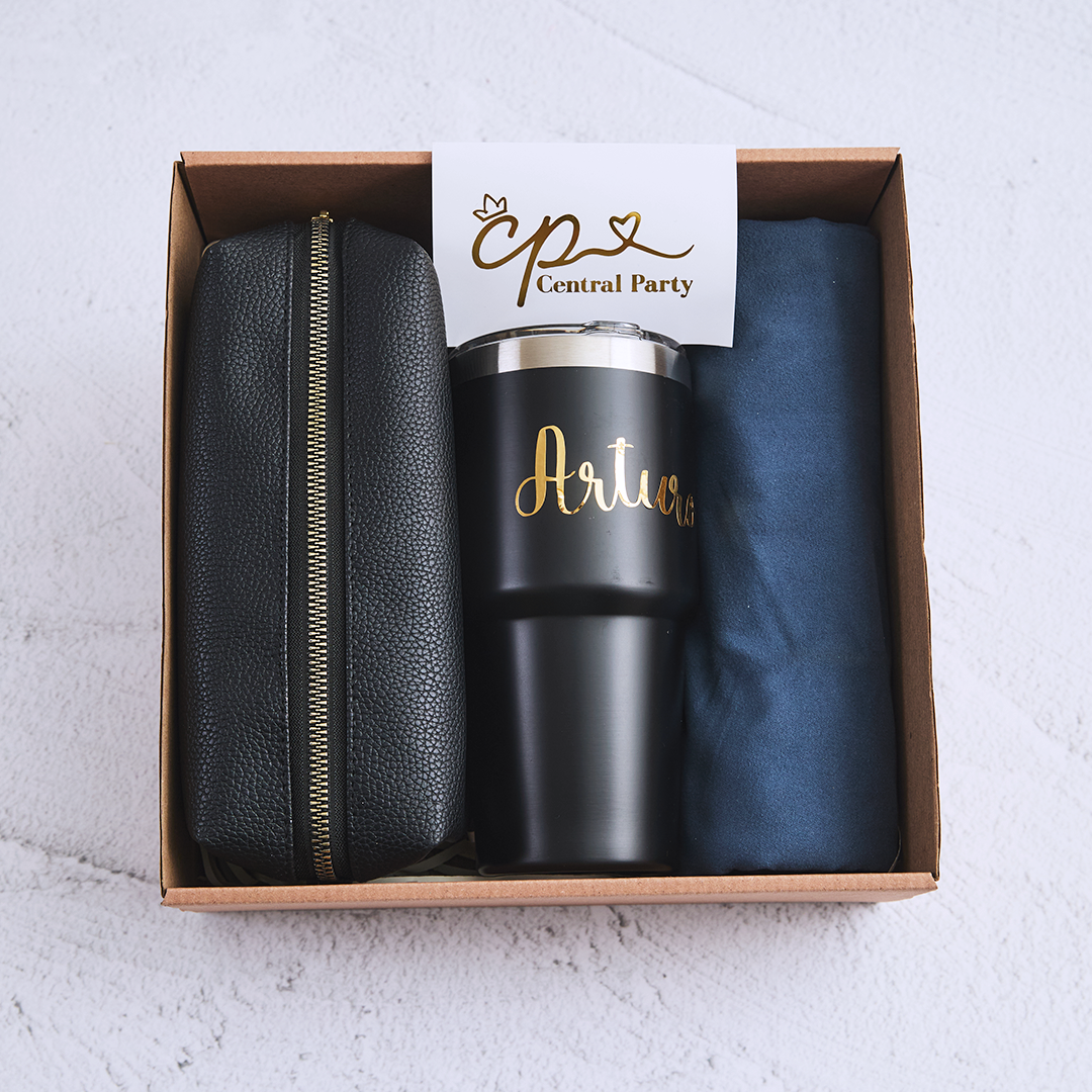 Neceser Negro Tumbler Grande Personalizado Toalla Microfibra Box Cartón + Listón y mica transparente Envíos...