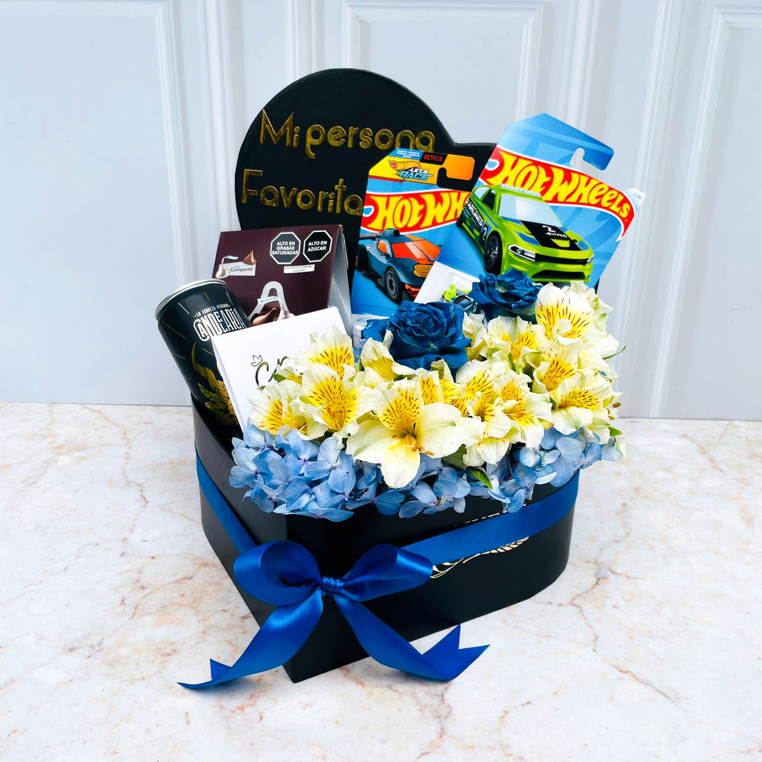 Sección exclusiva de detalles y regalos para sorprenderlo. Hotwheels, flores azules, dulces y mucho más.