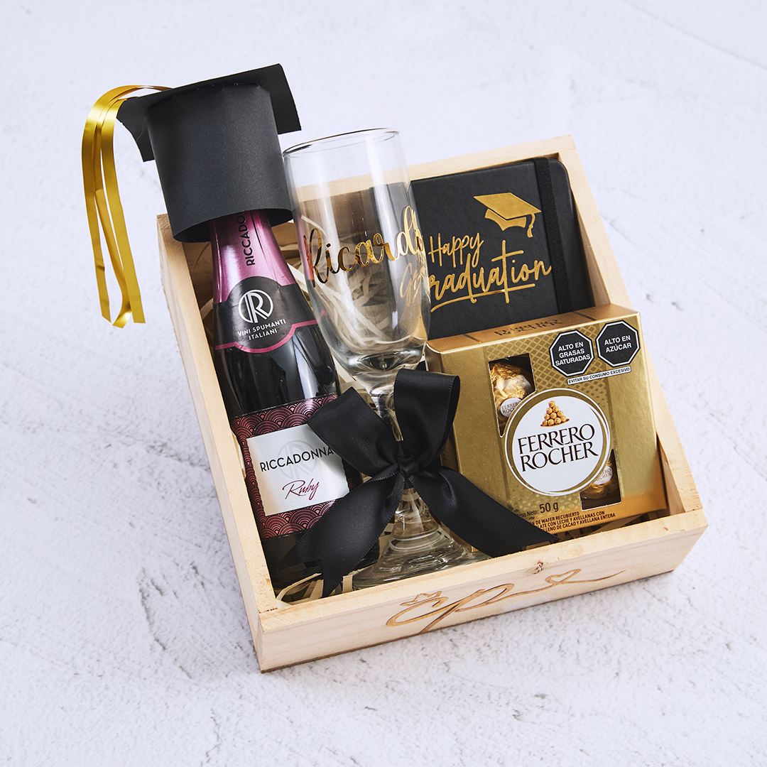 Riccadonna 200 ml. 4 Chocolates Ferrero Rocher Libreta Personalizada Copa Personalizada + Listón negro Birrete...