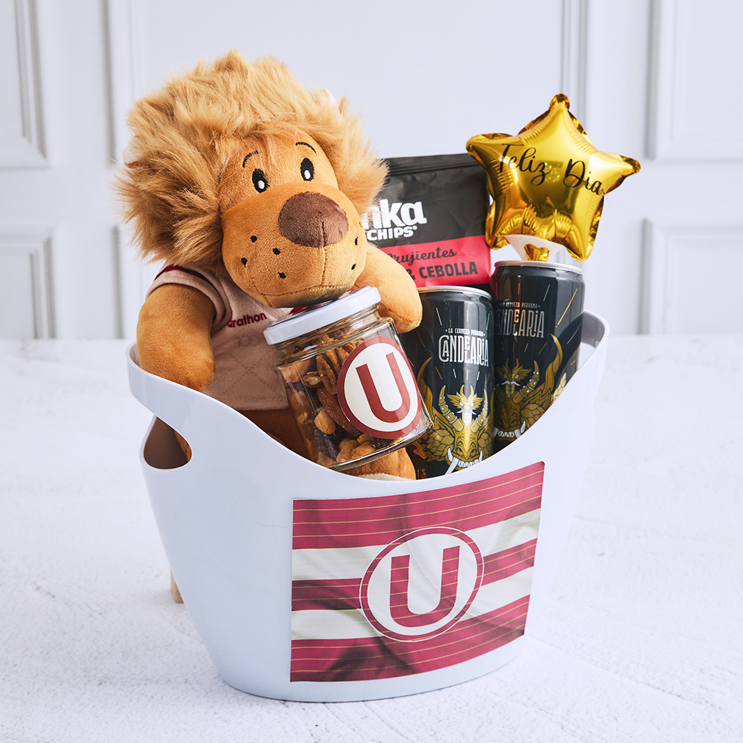 Peluche León Alianza Lima Frasco Frutos Secos 2 Candelarias Cerveza Inka Chips Globo metálico personalizado...