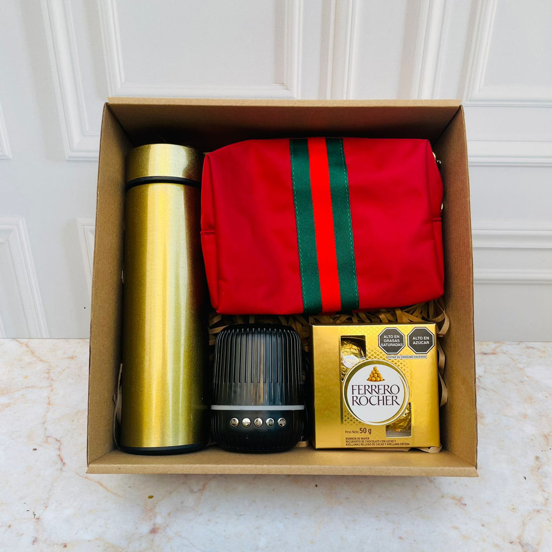 Termo Electrónico Neceser Rojo 4 Chocolates Ferrero Rocher Parlante con Bluetooth Caja con mica transparante...