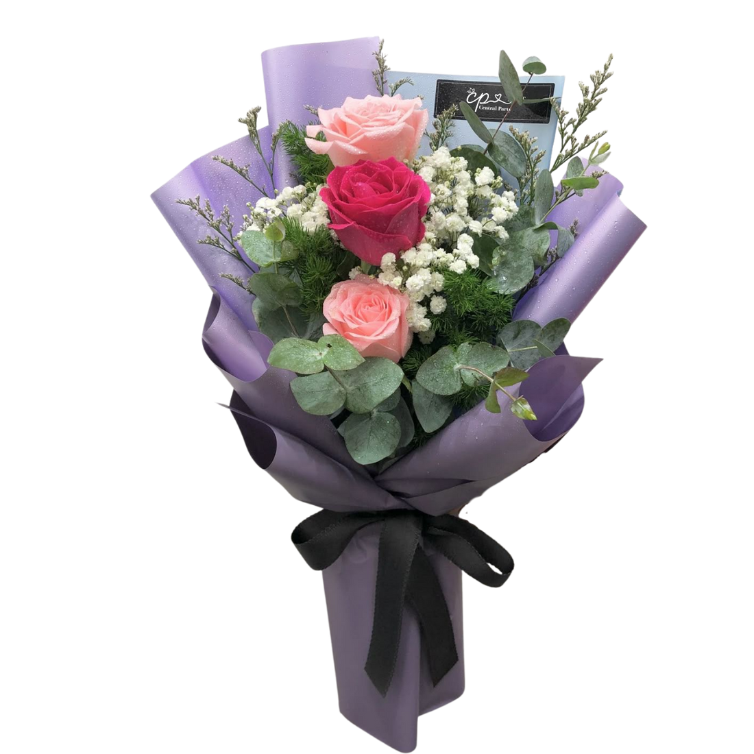 Envoltura estilo coreano 1 Rosa (Color a elección) Stadis (Siempre Viva morado) Lluvias Follaje Lazo...