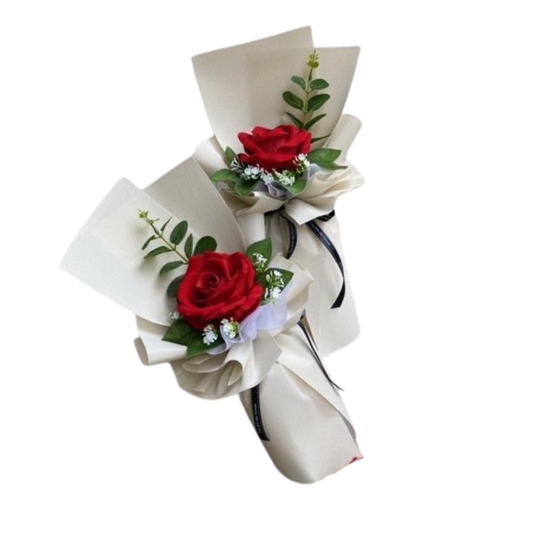 Envoltura estilo coreano 3 Rosas blancas Lluvia Follajes verde Verónica (O tipo de acompañamiento premium...