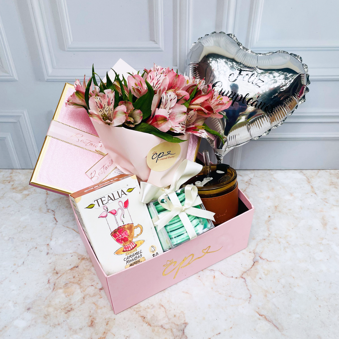 Caja de Té TEALIA Frasco con Brownies Taza Personalizada Mini Parlante Bluetooh Ramito flores secas...