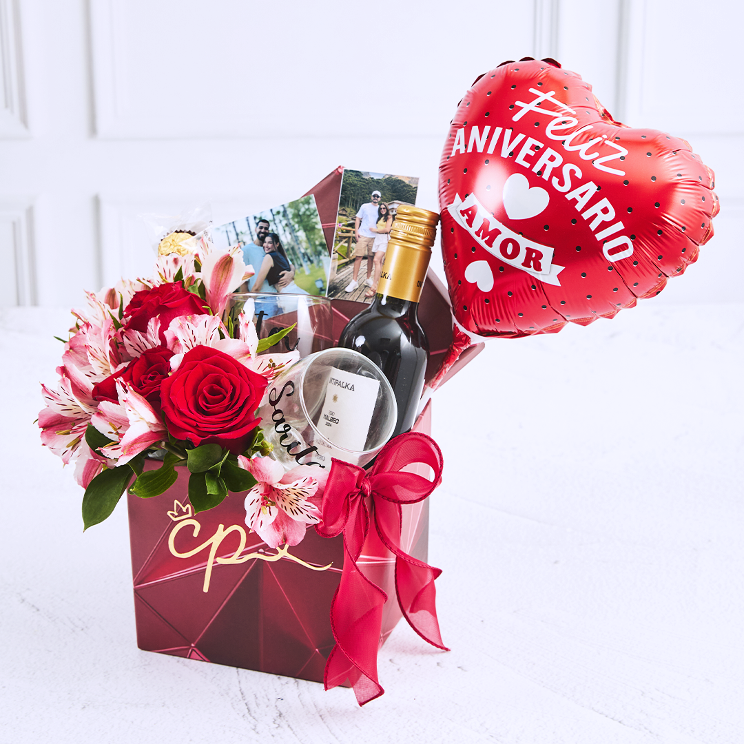 Vino Intipalka Globo Feliz Aniversario 3 Chocolates Ferrero Rocher Astromelias & Rosas Rojas 2 Fotografías...