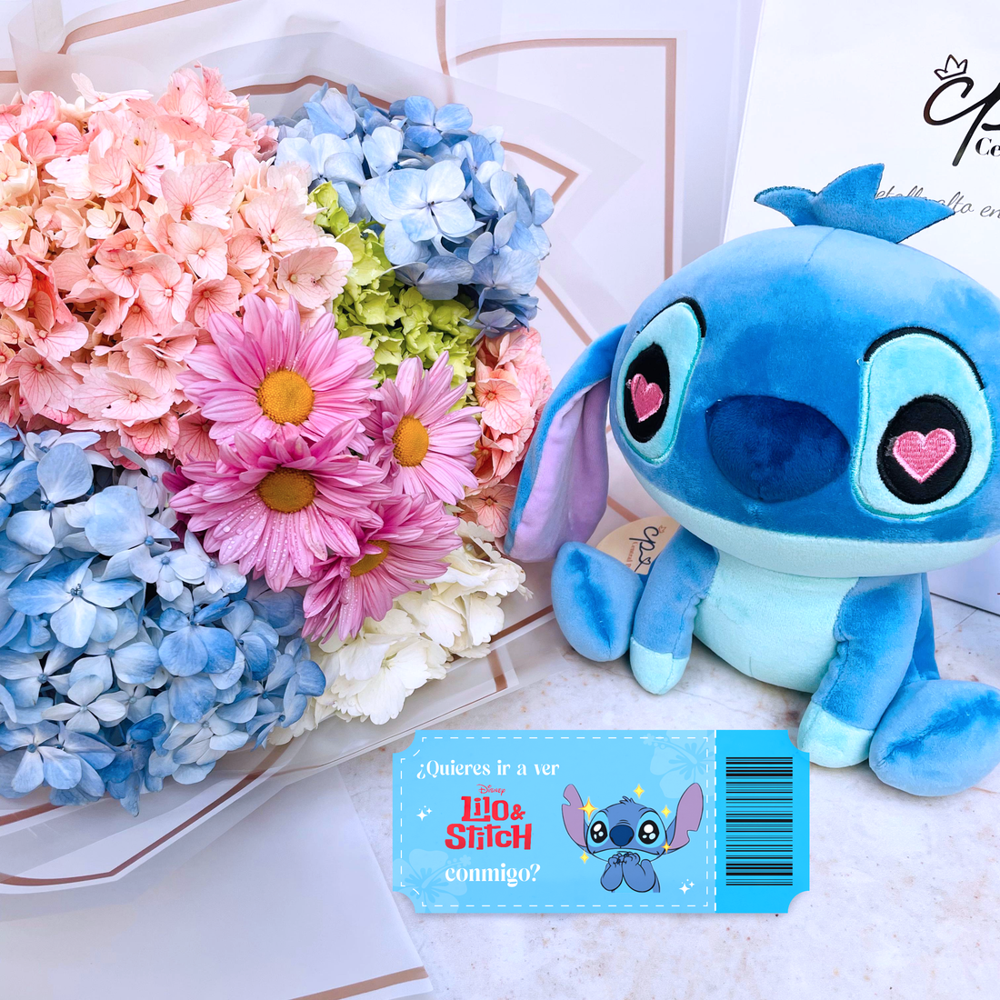 Pack Ramo Mixtura Hortensias + Stitch Corazón