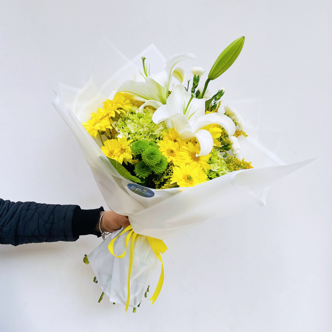 Margaritas amarillas Botón verde Lirio Hortensias Lirios blancos premium Claveles importados Este 21 de...