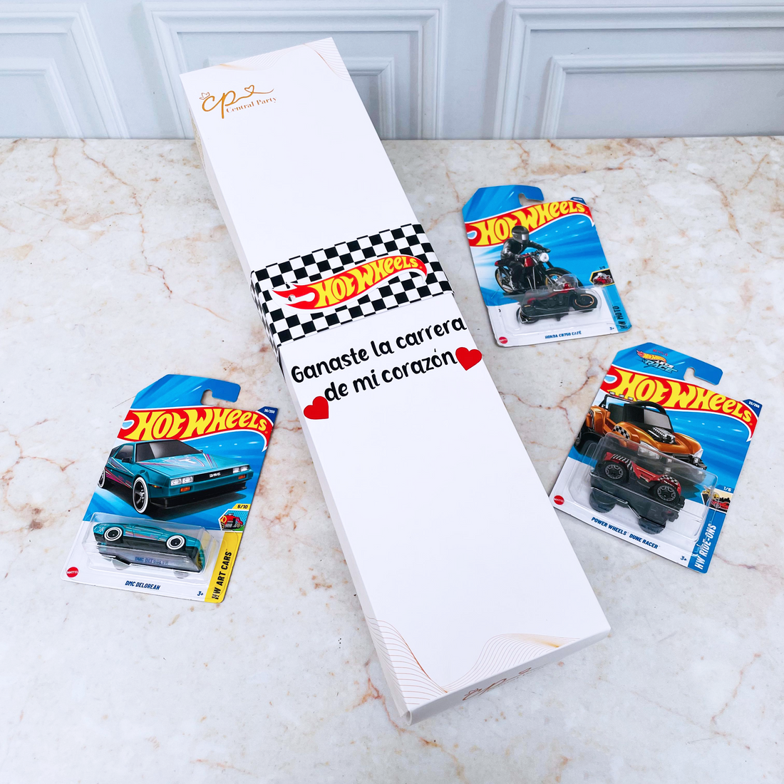 Box personalizado 2 HotWheels (Aleatorio) 1 Kitkat 1 Mento 1 Papa inkachips 1 Mini globo...