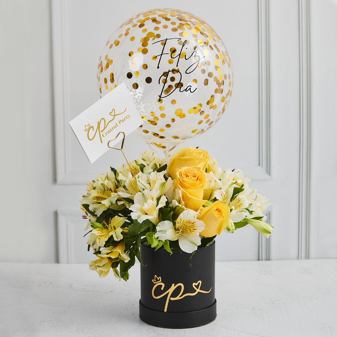 01 girasol 02 rosas amarillas Mix flores amarillas Follaje Premium 01 mini globo corazón ...