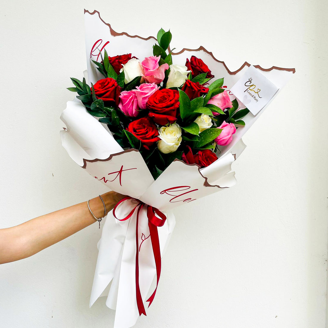16 Rosas Mixtas (Rojas, Blancas y Rosadas)