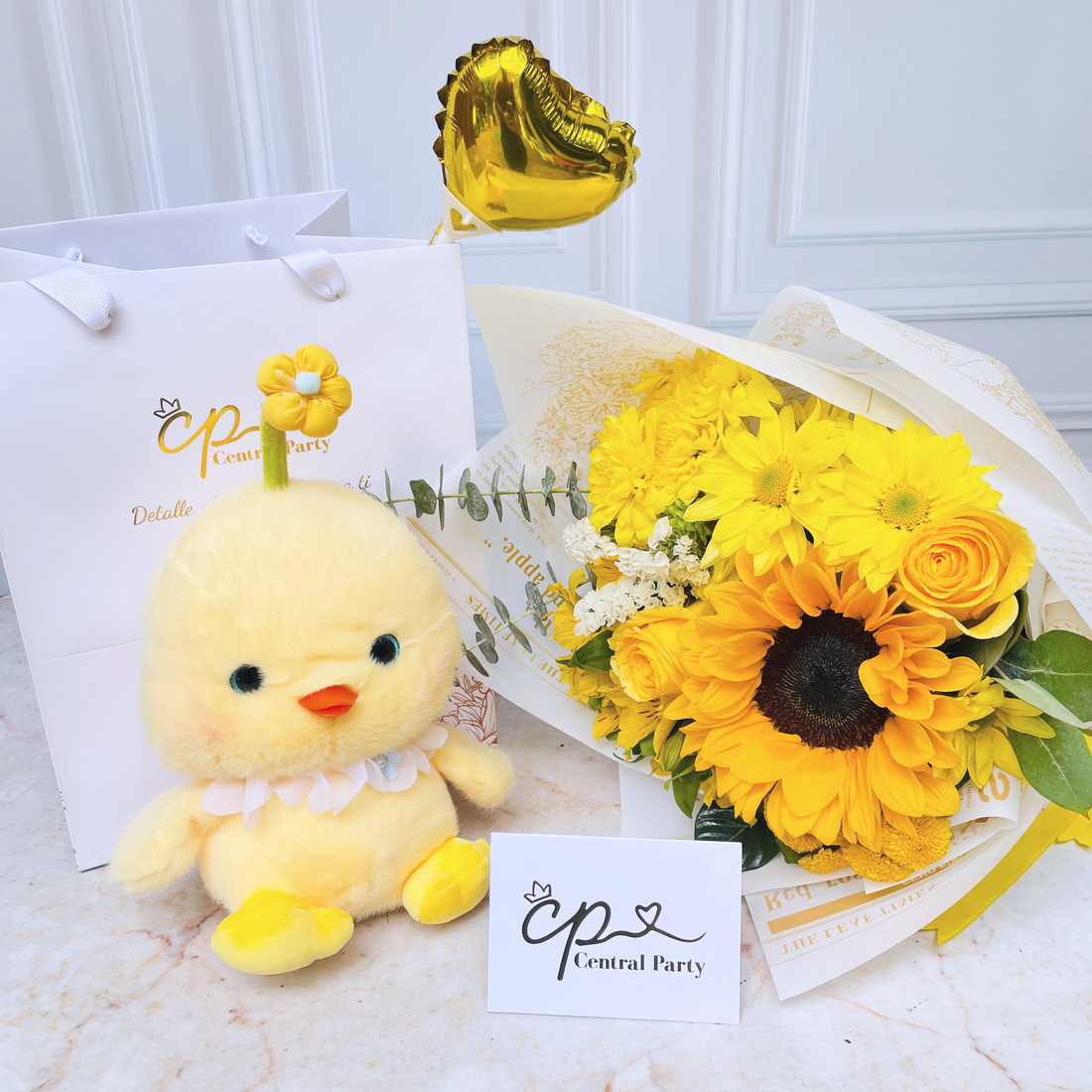 Ramo mix flores amarillas Peluche Patito Bolsa Central Party Mini globo Corazon ...