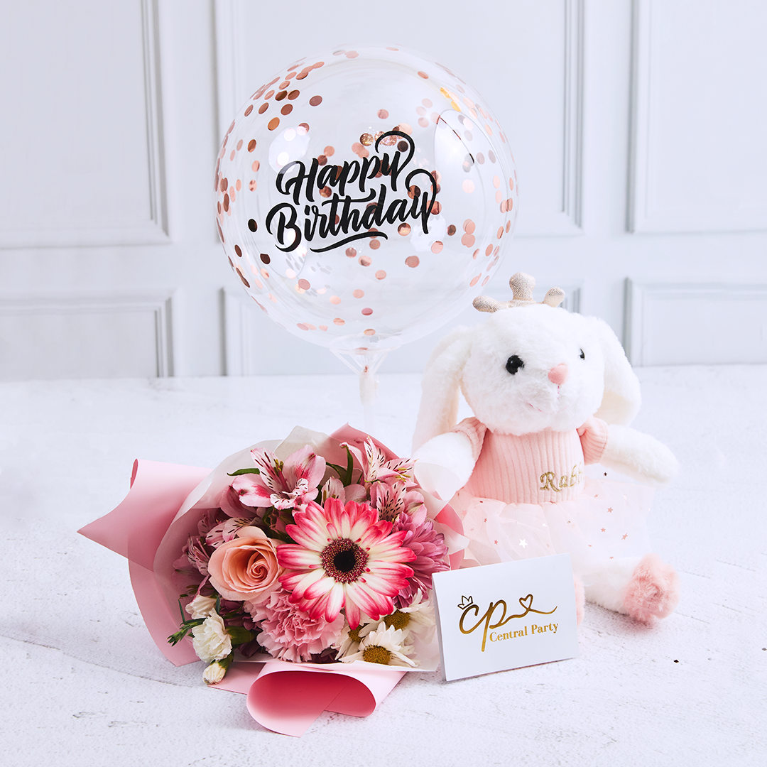 Globo Burbuja personalizado Peluche Conejita Princesa Ramito de Flores Pasteles Envíos a toda Lima y...