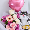 - Mix Flores Pasteles (Rosas blancas, Gerberas, Pompones rosas, Follaje Premium)