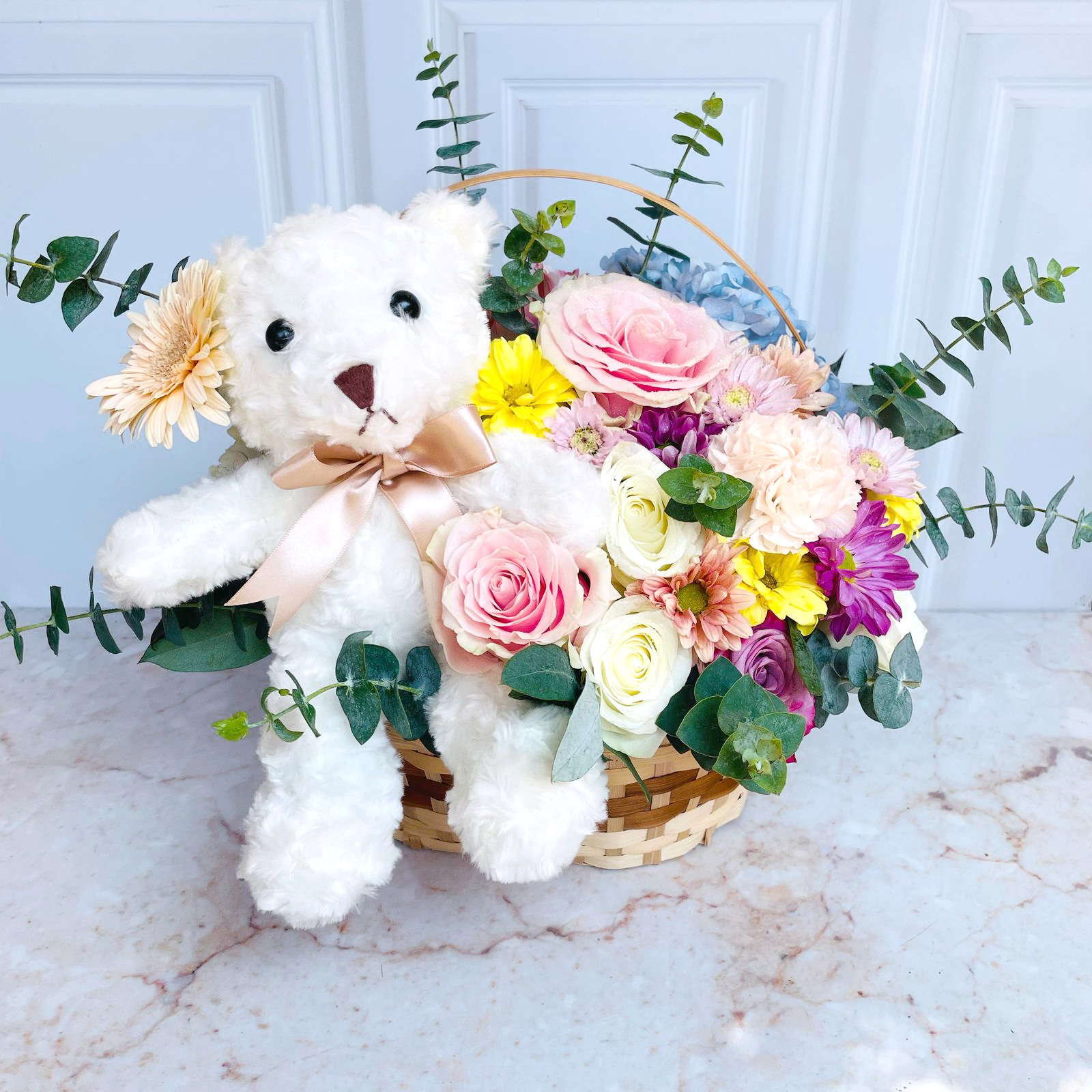 Canasta Peluche & Flores Primavera