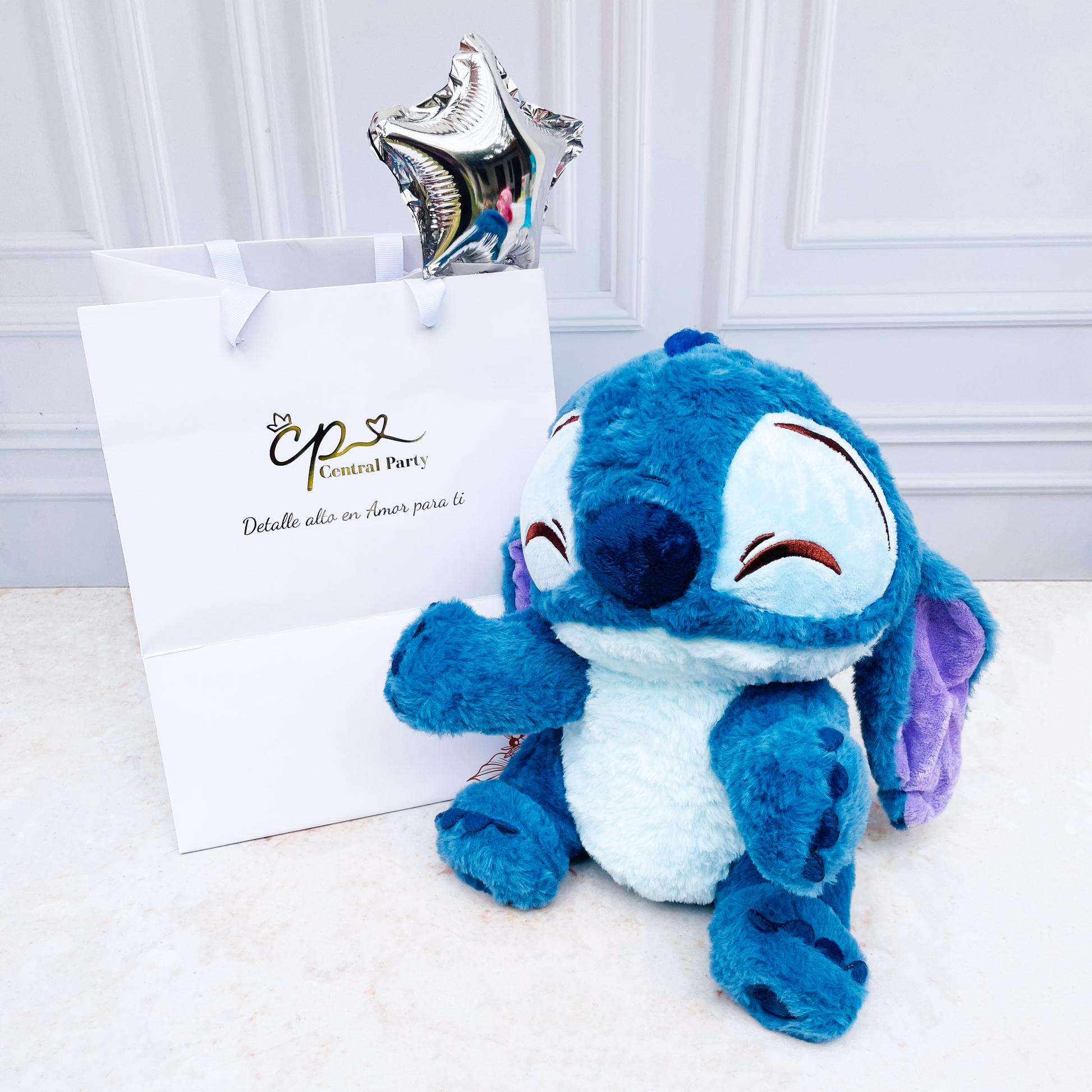 Peluche Stitch Grande para sorprender a tu persona favorita. Incluye Globito Corazón y tarjeta dedicatoria personalizada. Tamaño 28 x 22.