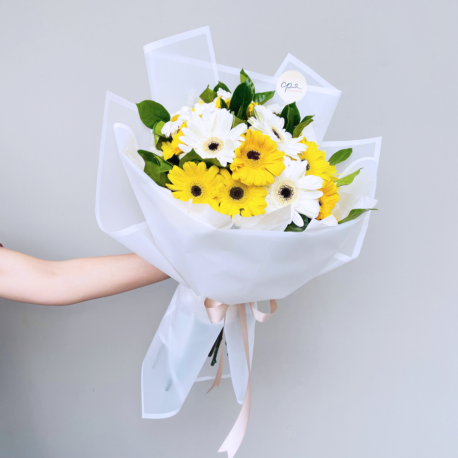 Este 21 de Setiembre, tus Flores Amarillas vienen con: Ramo base de Papel Coreano perfumado + Tarjeta dedicatoria personalizada