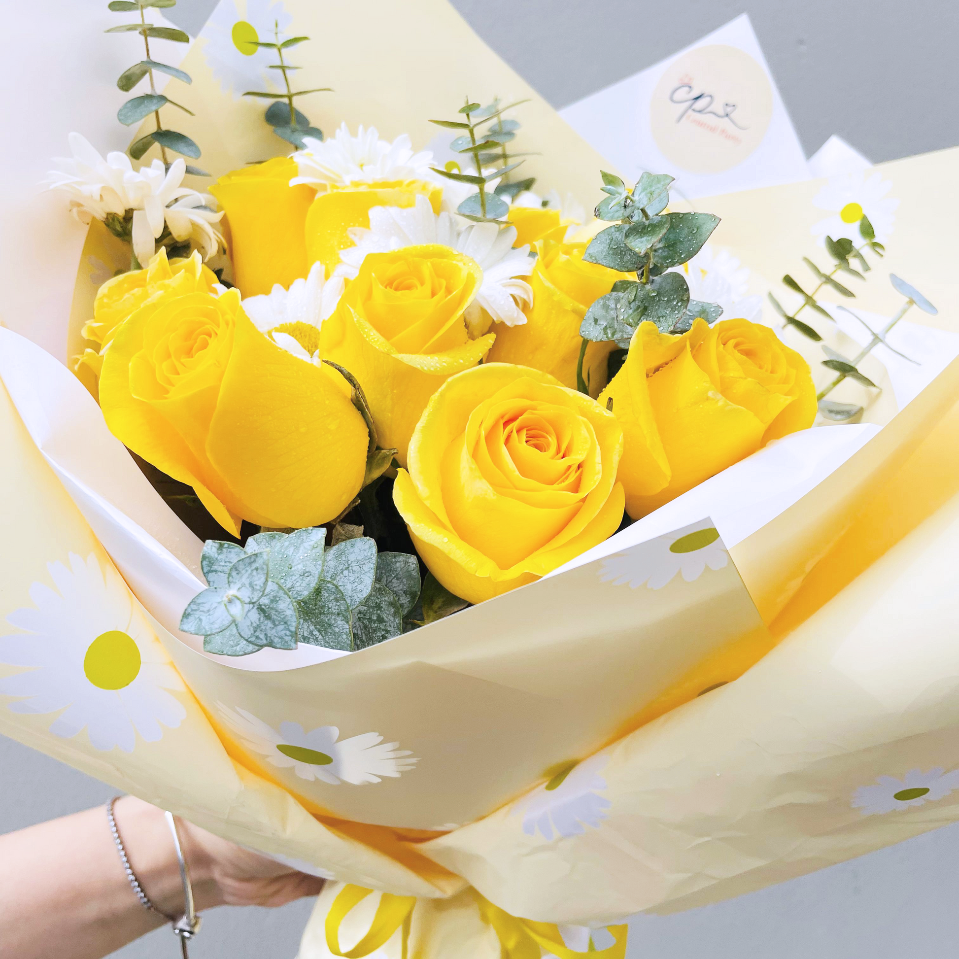 Este 21 de Setiembre, tus Flores Amarillas vienen con: Ramo base de Papel Coreano perfumado + Tarjeta dedicatoria personalizada