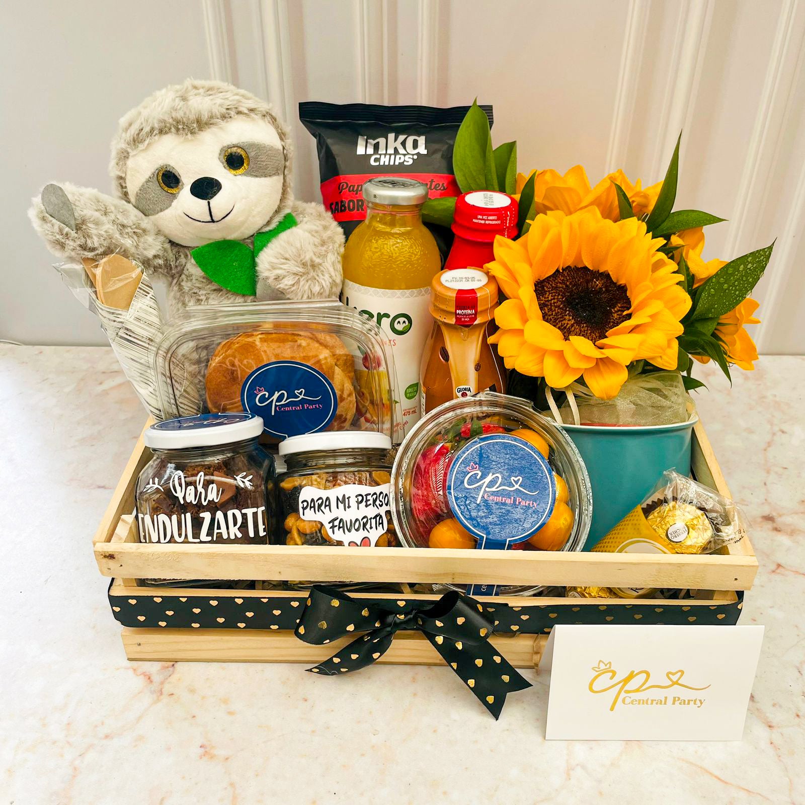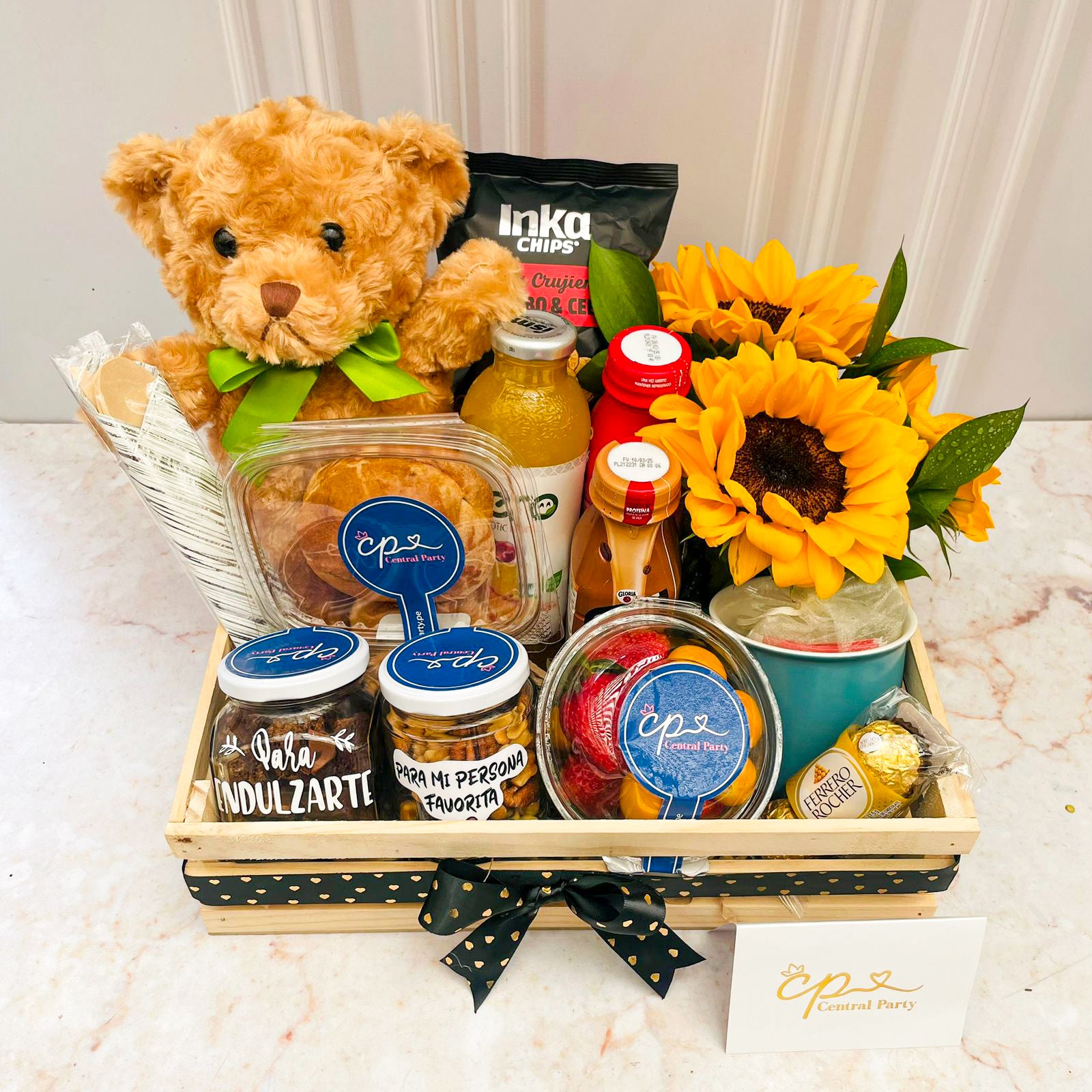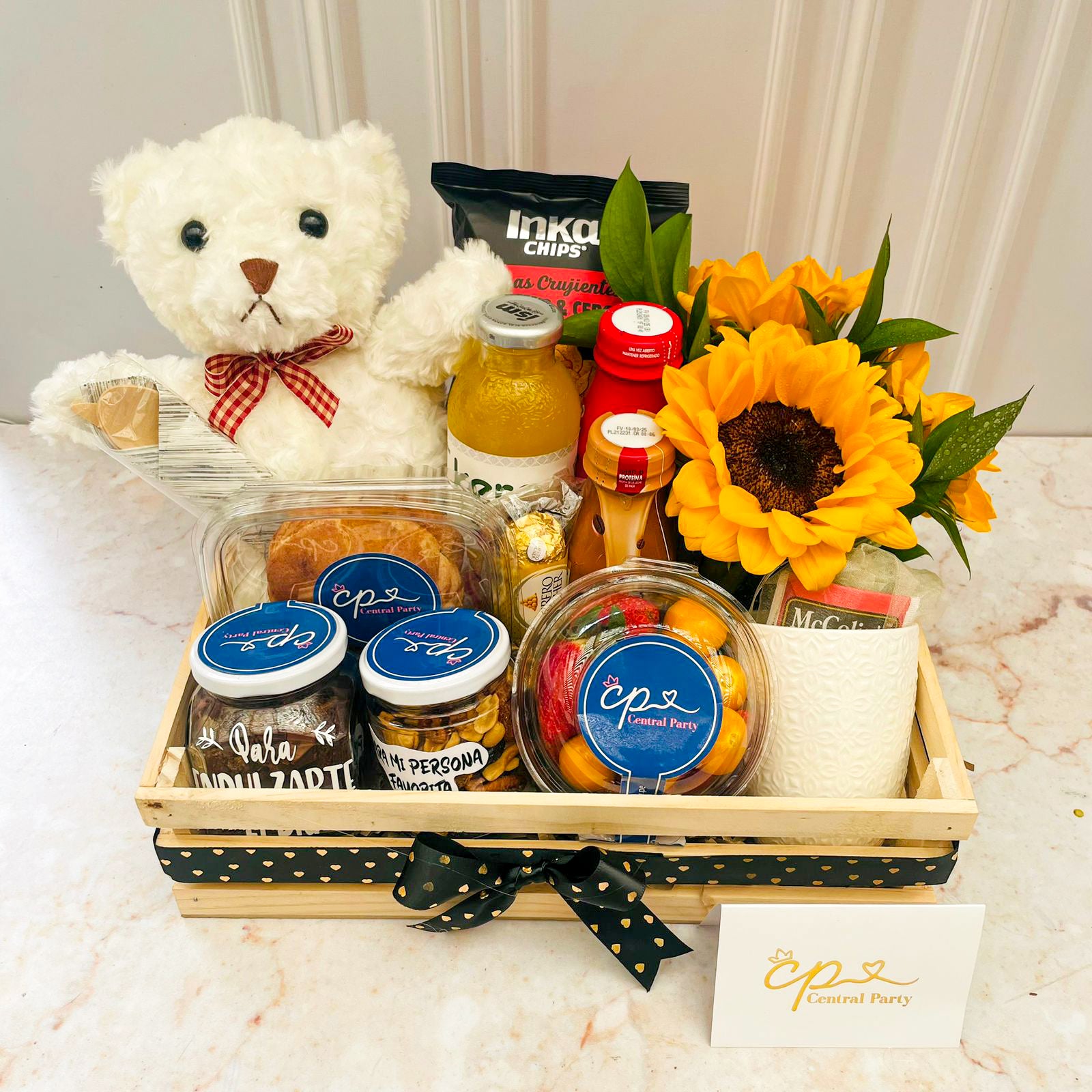Las fotografías mostradas son referenciales y los productos pueden tener pequeñas variaciones. Todos los detalles llevan tarjeta dedicatoria personalizada.