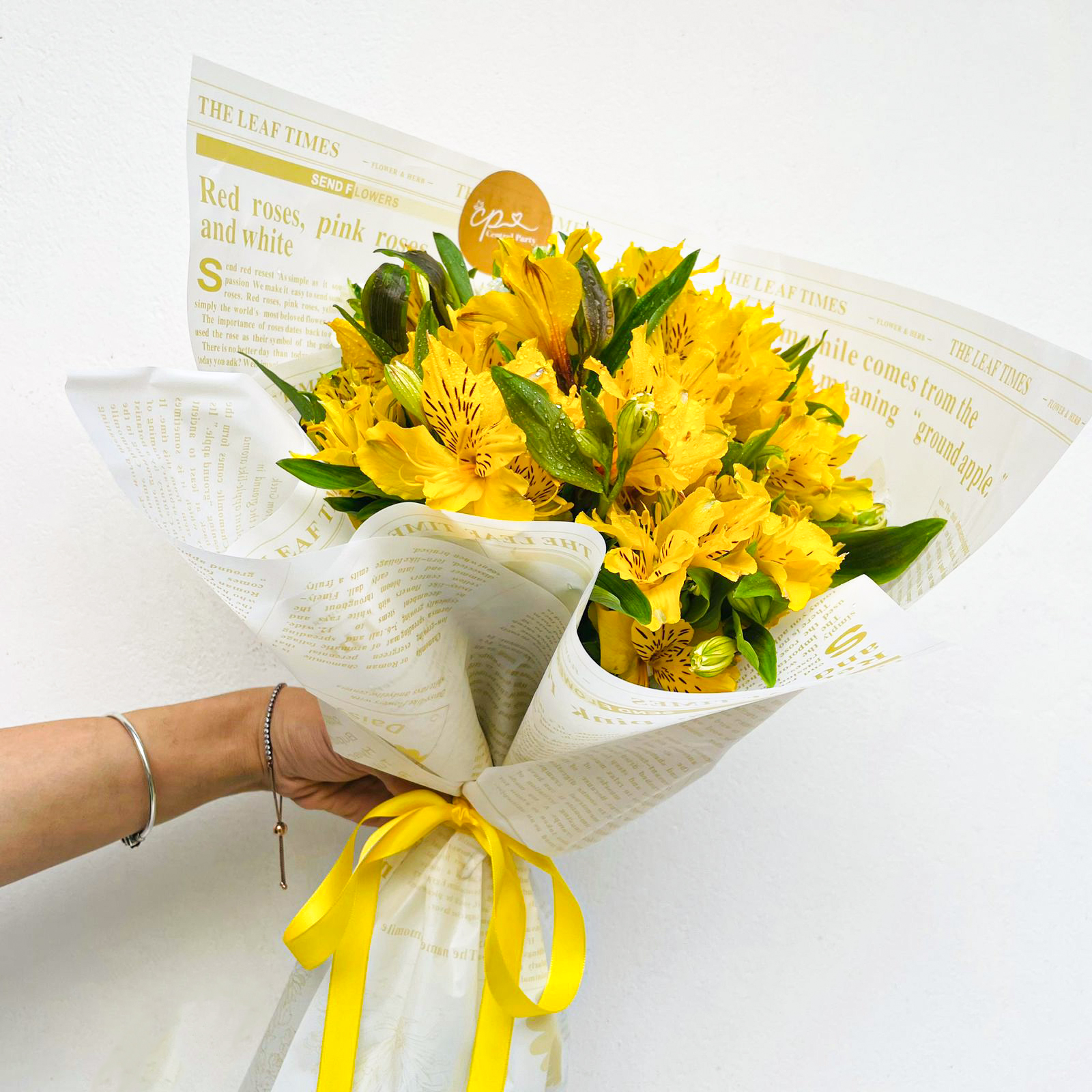 Este 21 de Setiembre, tus Flores Amarillas vienen con: Ramo base de Papel Coreano perfumado + Tarjeta dedicatoria personalizada